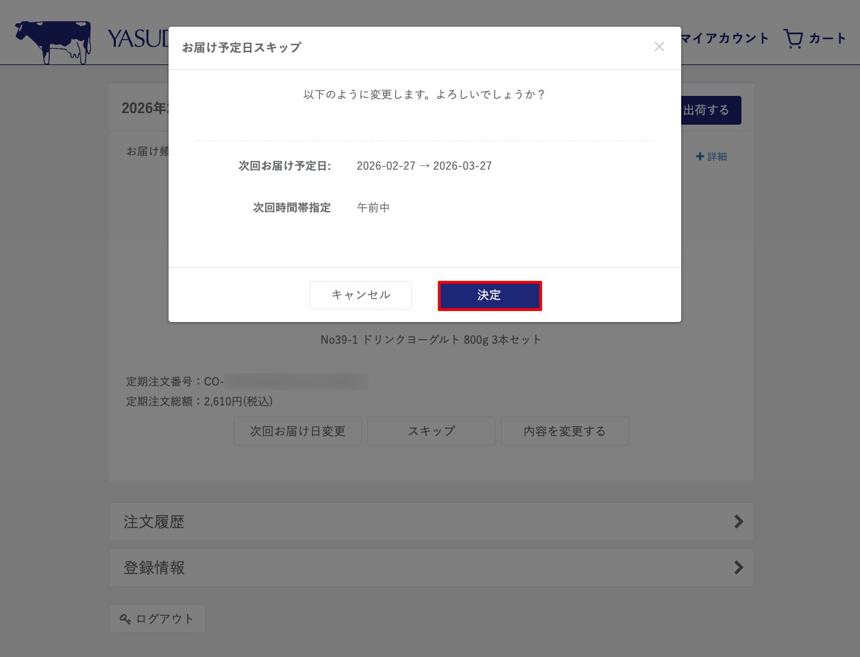 3. スキップ後の次回お届け予定日を確認します
