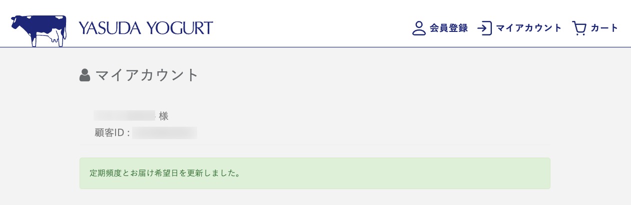 「定期頻度とお届け希望日を更新しました。」と表示されていれば変更のお手続きは完了です。